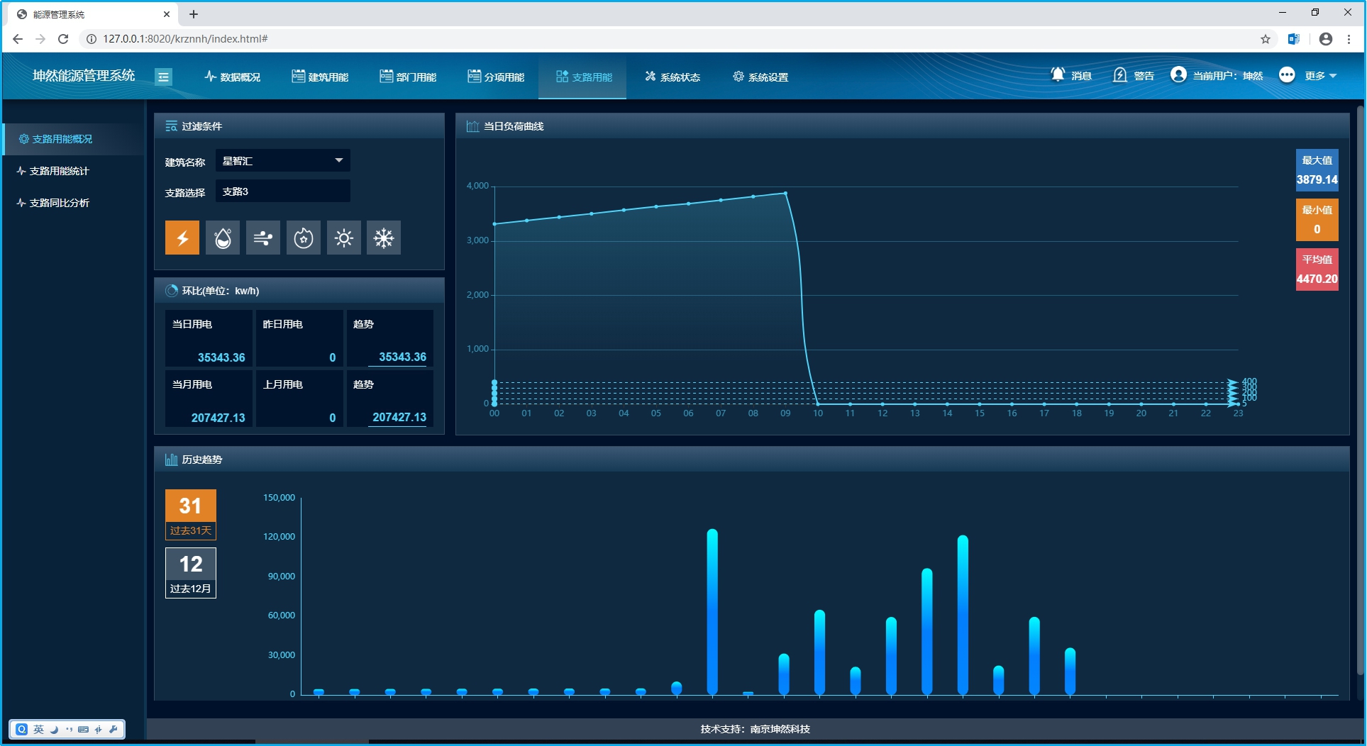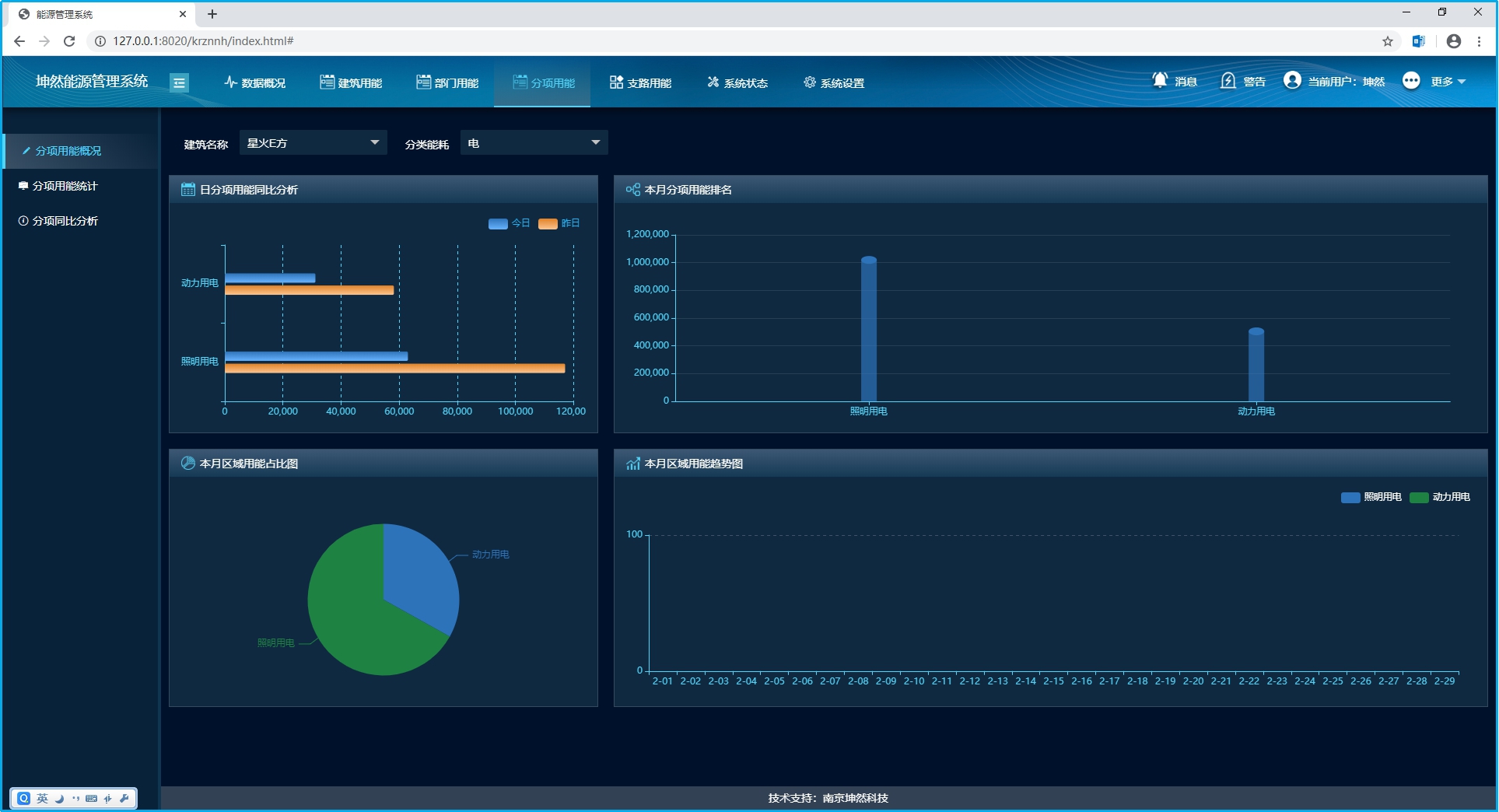 系統(tǒng)將電能消耗逐級分項,摸清電能的組成和流向;將電能使用情況分為照明插座用電、空調(diào)用電、動力用電、特殊用電,找到電能消耗重點,為節(jié)能改造提供數(shù)據(jù)依據(jù)。