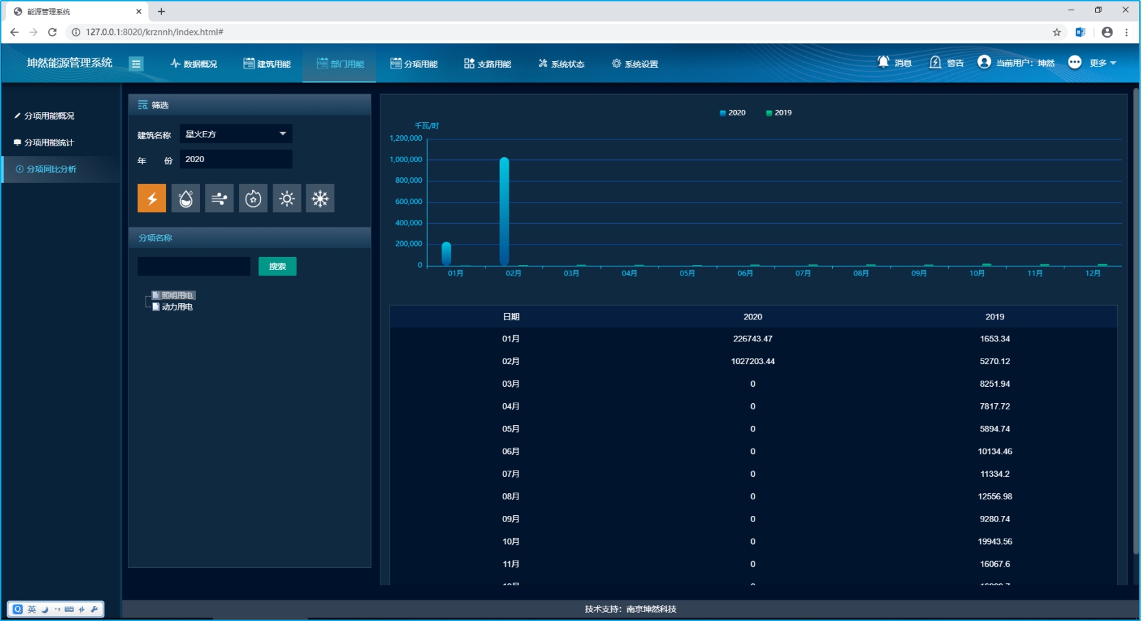 主要可以查看當前項目某一建筑的能耗總體分析數(shù)據(jù)