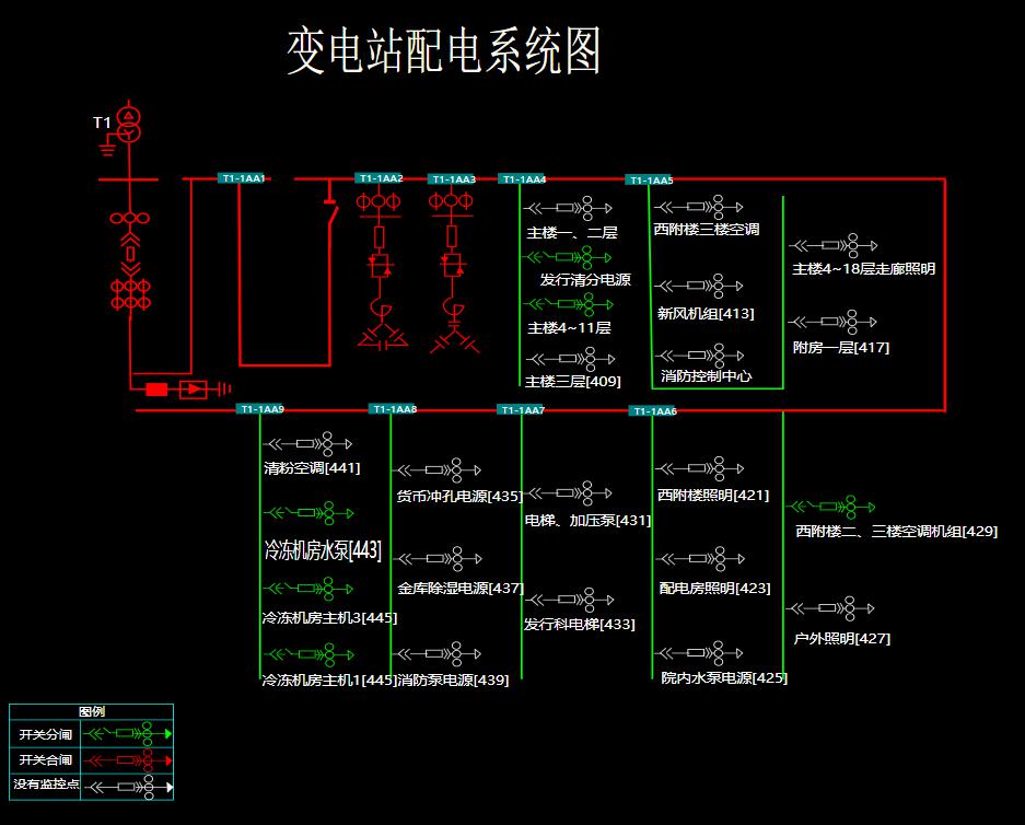 數(shù)據(jù)配電圖是系統(tǒng)根據(jù)客戶要求定制的系統(tǒng)圖,可以根據(jù)數(shù)據(jù)的變化實時展示設(shè)備數(shù)據(jù)和狀態(tài)。
